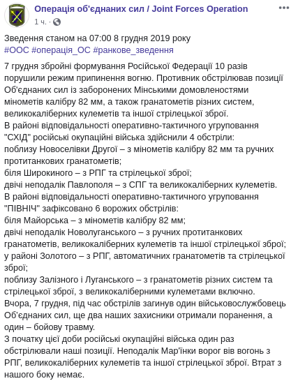 Скриншот: Facebook/Операція об'єднаних сил / Joint Forces Operation