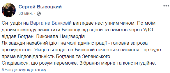 19:36  Около "Дома с химерами" начали устанавливать палатки, в это время под ОП толпа кричит "Богдана в отставку". Видео "Страны".