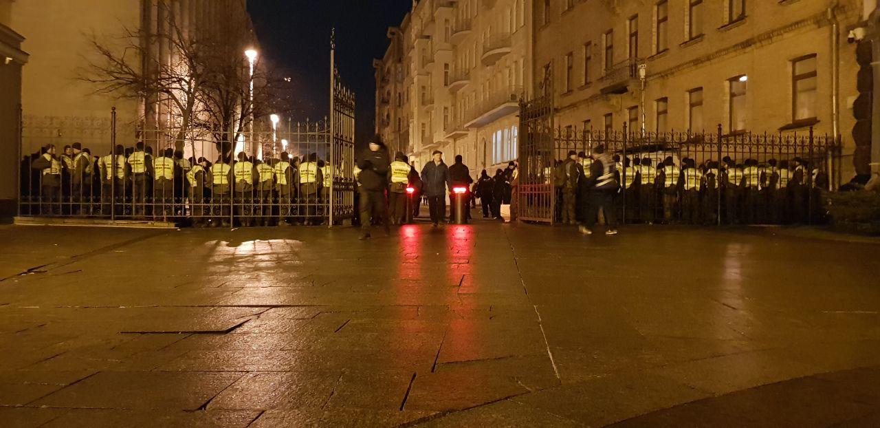 Многие участники протеста уже покинули Банковую. Правительственный квартал по-прежнему охраняет несколько сотен правоохранителей: бойцы спецподразделения Национальной полиции, военнослужащие Национальной гвардии, сотрудники Госслужбы Украины по ЧС. Они не препятствуют проведению акции.