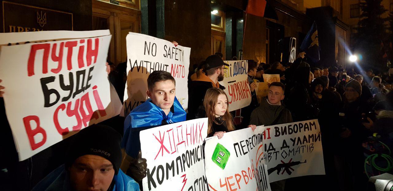 На Банковой сегодня вечером проходит вторая часть Порох-майдана. "Рух опору капітуляції" собирается стать с палатками под Офисом президента и дожидаться там решений Нормандской четверки.