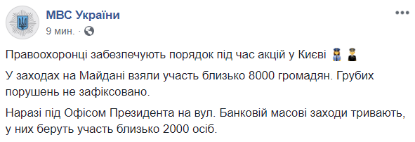20:35  Полиция сообщила, что на Порох-майдан днем пришло восемь тысяч человек. А на Банковой сейчас - 2000.