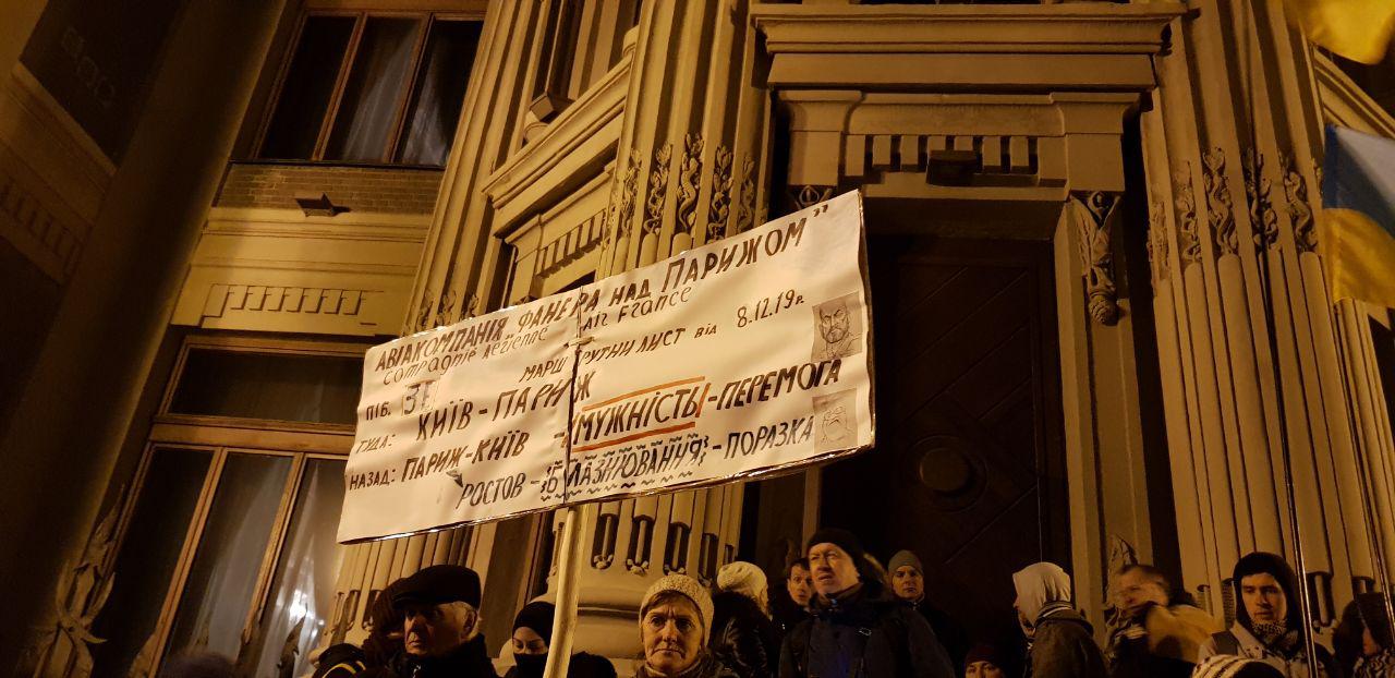 23:35 У здания Офиса президента на Банковой продолжается акция "Варта на Банковой" с требованием к Владимиру Зеленскому не допустить сдачи национальных интересов государства во время переговоров "Нормандском формате" в Париже в понедельник.