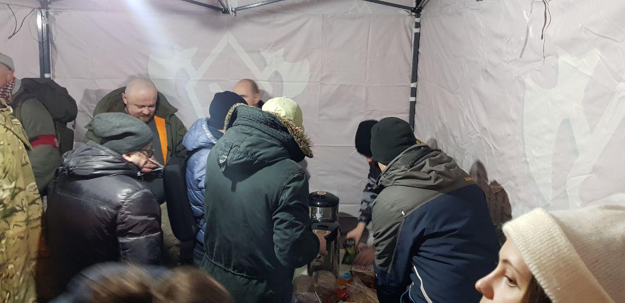 Под Офисом президента на улице Банковой, где проходит акция "Стража на Банковой", протестующие установили первые палатки.