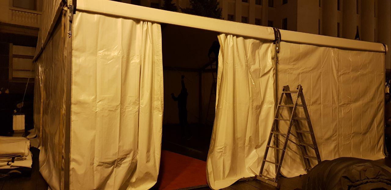 На улице Банковой под Офисом президента, где проходит акция протеста накануне нормандской встречи, Нацкорпус выстроил целый дом. Об этом сообщает корреспондент "Страны".