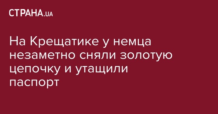 Он утверждает что спиртного не употреблял, смотрел город и, выйдя из толпы на Крещатике, заметил, что у него с шеи исчезла массивная золотая цепь стоимостью, по словам потерпевшего, около 2 тысяч евро, а из кармана брюк карманники вытащили паспорт гражданина ФРГ.