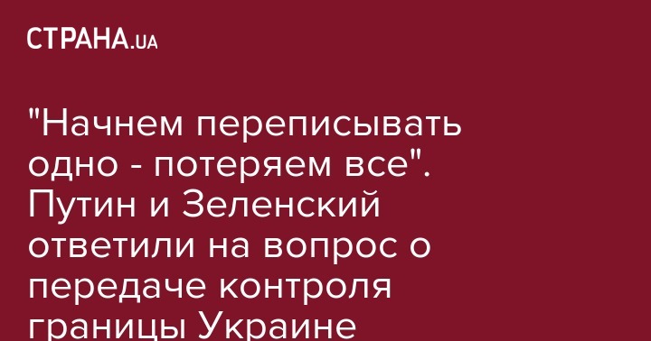 После Зеленского на этот же вопрос журналиста ответил президент РФ Путин: "По поводу границы. У нас действительно позиция не совпадает. Мы за то, чтобы выполнялись минские соглашения. Возьмите и почитайте, что там написано. А именно, что Украина начинает устанавливать контроль на следующий день после выборов. И окончательно - после выполнения. Зачем вскрывать минские соглашения? Там все увязано. Начнем переписывать одно - потеряем все".