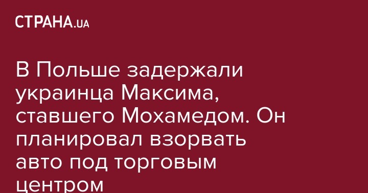 В Польше задержали украинца Максима, ставшего Мохамедом. Он планировал взорвать авто под торговым центром