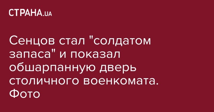 "Так как я сейчас почти киевлянин, то пошел и стал на воинский учет. Теперь я солдат запаса и если что-то...", - сообщил он. Сенцов также добавил, что "военкоматы конечно поражают своей обшарпанностью, но люди внутри очень хорошие". "Так и с нашей страной: народ хороший, а нормальное государство построить не в состоянии", - резюмировал он.