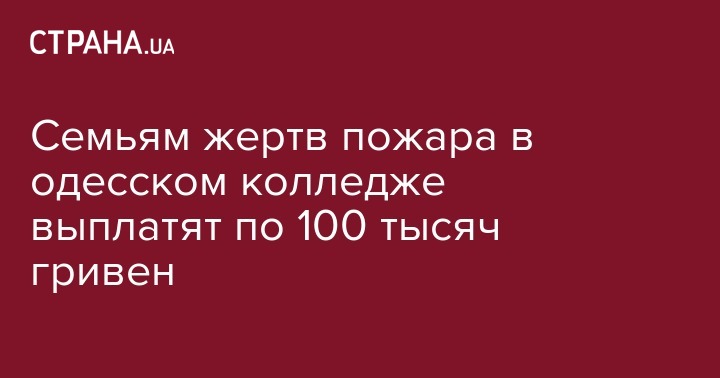 По 100 тысяч гривен одноразовой денежной помощи получат семьи погибших при пожаре в Одесском колледже экономики, права и гостинично-ресторанного бизнеса. Об этом сообщил глава Одесской облгосадминистрации Максим Куцый на своей странице в Facebook.