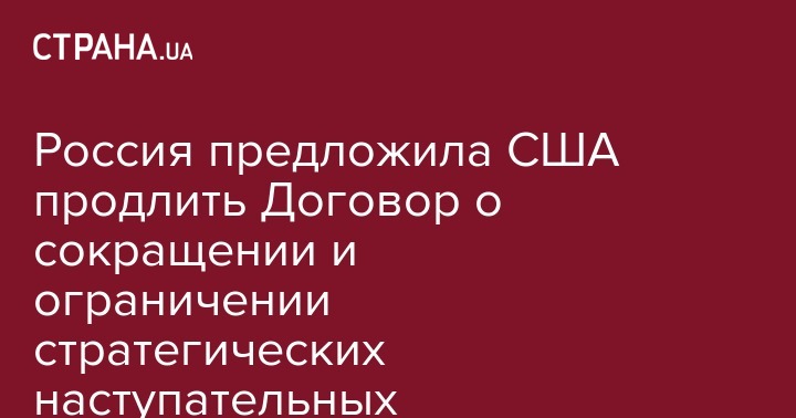 Россия предложила США продлить Договор о сокращении и ограничении стратегических наступательных вооружений