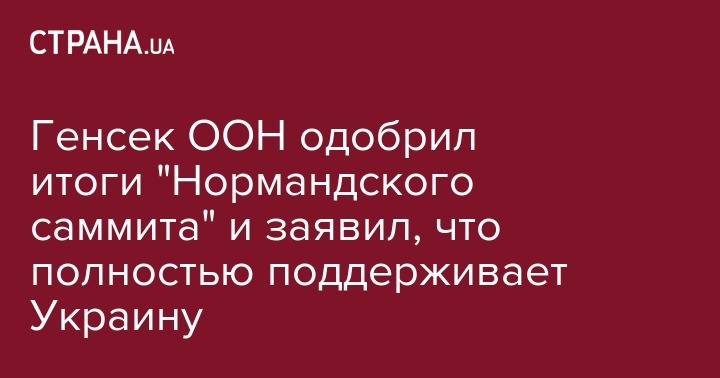 Генеральный секретарь ООН Антониу Гутерриш положительно воспринял и оценил результаты "Нормандского саммита", который прошел 9 декабря в Париже.