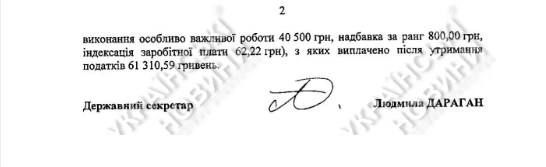 Фактическая сумма, полученная министром после удержания налогов и сборов, составила 18 614 гривен.
