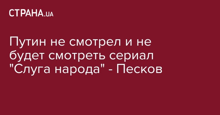 "Путин не смотрел "Слугу народа" с Зеленским в главной роли и не планирует этого делать, времени на сериалы у него нет", - сказал пресс-секретарь.