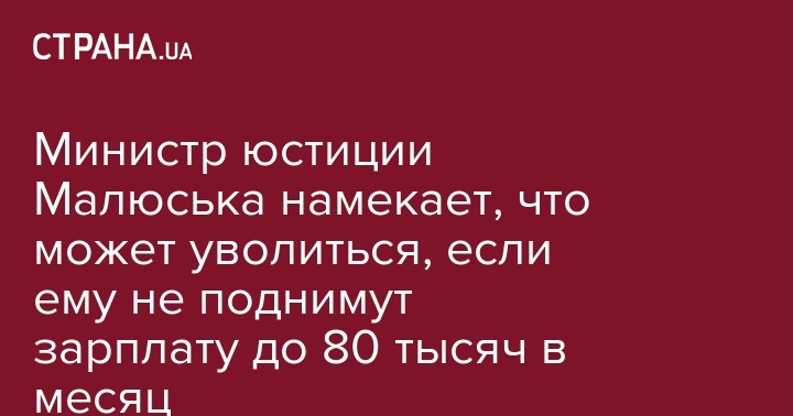 Министр юстиции Малюська намекает, что может уволиться, если ему не поднимут зарплату до 80 тысяч в месяц