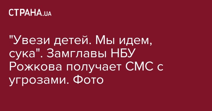 Рожкова сообщила также, что вчера в 17:19 с неизвестного номера на свой мобильный получила СМС с угрозами. Она показала фото с телефона, где написано: "Застрахуй дом и здоровбе. Увези детей. Мы идем, сука". "Эти угрозы я воспринимаю как реальные, связанные с выполнением мною служебных обязанностей в должности первого заместителя главы НБУ", - отметила она.