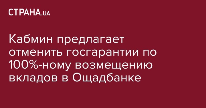 Кабмин предлагает отменить госгарантии по 100%-ному возмещению вкладов в Ощадбанке