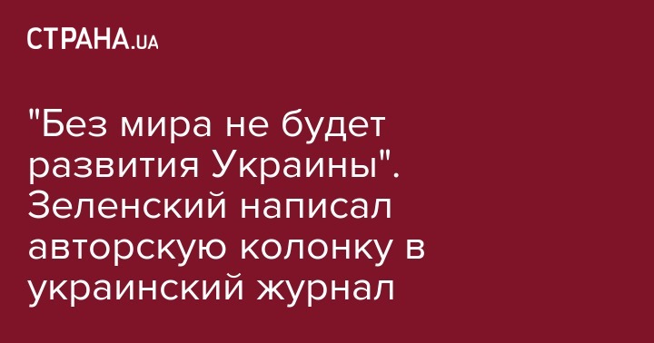 1. "Мир. "Без мира никакого развития быть не может, — напоминает президент. — Мы хотим мира на наших условиях. То есть с возвращением Украине территорий и наших людей".
