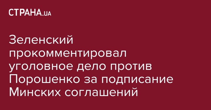 Президент Украины Владимир Зеленский прокомментировал возбуждение уголовного дела против Петра Порошенко по обвинению в госизмене за подписание Минских соглашений.
