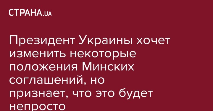 Глава Украины Владимир Зеленский заявил, что украинская сторона будет пытаться изменить некоторые положения Минских соглашений, но это будет непросто, в частности, по вопросу передачи границы под контроль Украине.
