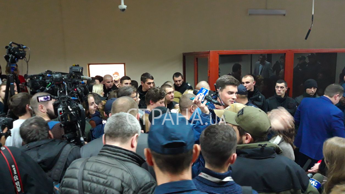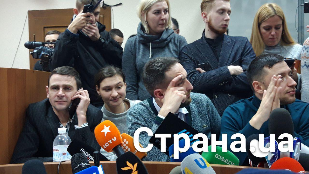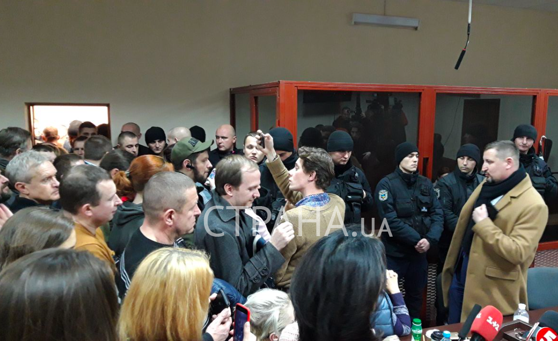 18:44 Ходатайство не удовлетворили. То есть меру пресечения продолжит избирать судья Вовк. Группа поддержки Кузьменко в зале кричит: "Ганьба! Собаки!" В зале на короткое время выключили свет.