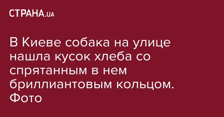 В Киеве пес во время прогулки преподнес своей хозяйке роскошное кольцо с сапфирами и бриллиантами. Драгоценность была спятана в валявшемся на улице куске черного хлеба, который и стал добычей собаки по кличке Арчи. Забавный инцидент произошел 11 декабря на Харьковском массиве столицы. Об этом в соцсети рассказала хозяйка собаки Жанна Яременко, которая с помощью соцсети разыскивает владельца кольца.