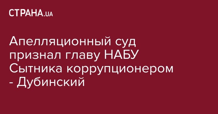 "Сытник проиграл аппеляцию. И является признанным судом коррупционером. Коррупционер во главе Антикоррупционного бюро", - написал Дубинский и привел решение суда первой инстанции.