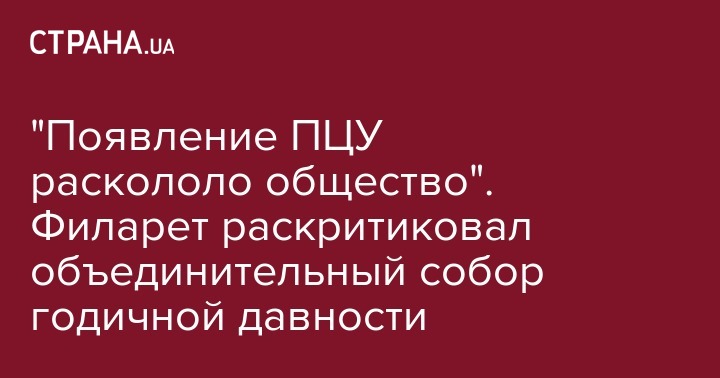 "Появление ПЦУ раскололо общество". Филарет раскритиковал объединительный собор годичной давности