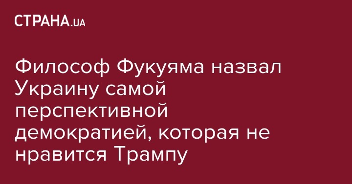 Фукуяма считает, что отношения Украины с иностранными союзниками стали менее прочными: "США были их самым сильным союзником, но теперь в Белом доме есть президент, которому они не особенно нравятся. Я думаю, что Германия и Франция также ослабят свою поддержку независимости Украины, поэтому (Украина - Ред.) находится в действительно сложном положении".