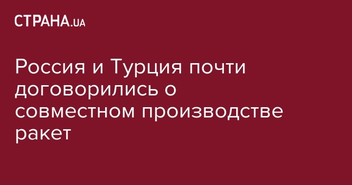 Россия и Турция почти договорились о совместном производстве ракет