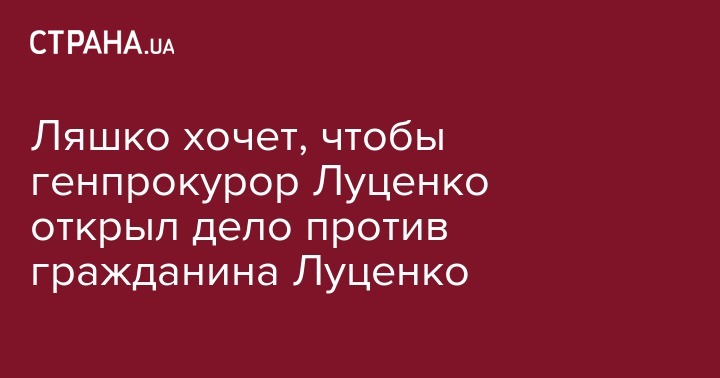 Лидер Радикальной партии Олег Ляшко требует от Генеральной прокуратуры Украины открыть уголовное производство против гражданина Юрия Луценко, который, по его словам, в прошлом угрожал сотрудникам правоохранительных органов. Об этом сообщает "Интерфакс-Украина".