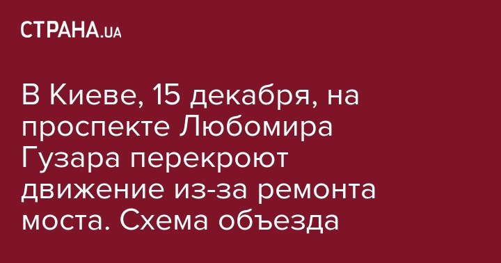 В Киеве, 15 декабря, на проспекте Любомира Гузара перекроют движение из-за ремонта моста. Схема объезда