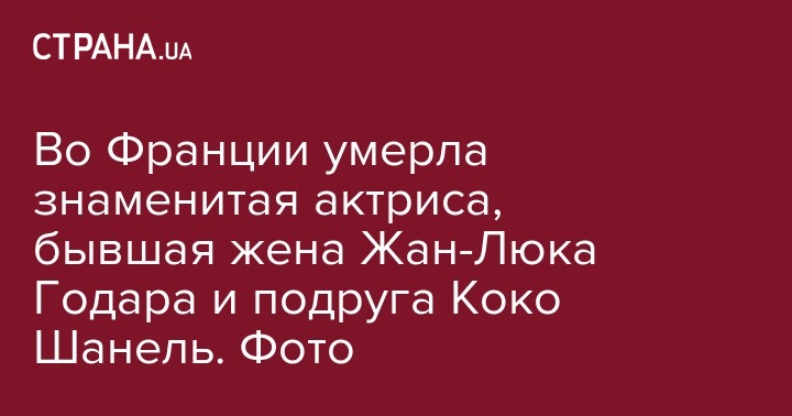 Во Франции в возрасте 79 лет скончалась актриса Анна Карина, которая получила мировую популярность благодаря фильмам классика "новой волны" режиссера Жан-Люка Годара. Об этом сообщает AFP.
