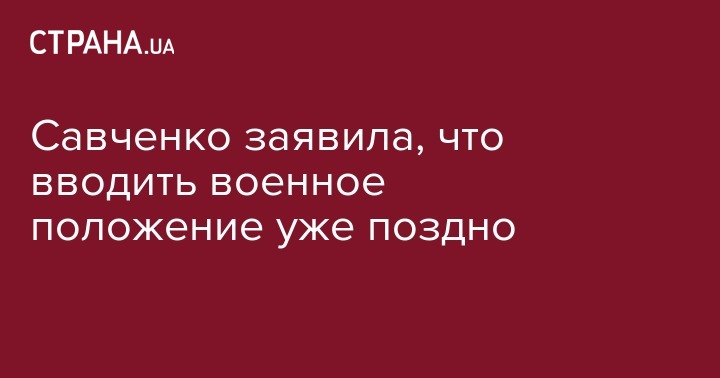 Народный депутат Украины от фракции "Батькивщина" Надежда Савченко считает, что сейчас уже поздно вводить в Украине военное положение. Об этом сообщает "Интерфакс-Украина".