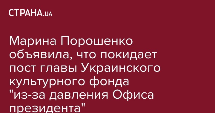 Марина Порошенко объявила, что покидает пост главы Украинского культурного фонда "из-за давления Офиса президента"