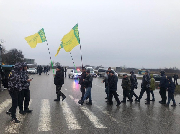 Под Харьковом Нацкорпус перекрыл трассу, требуя отменить продажу земли в Украине