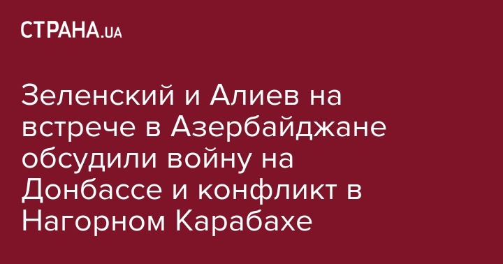 "Важная тема сегодняшней беседы - это обеспечение региональной и национальной безопасности. Прежде всего речь идет о войне на востоке Украины и нагорно-карабахском конфликте. Мы неизменно поддерживаем друг друга в вопросах восстановления суверенитета и территориальной целостности наших государств в рамках международно признанных границ", - заявил Зеленский.