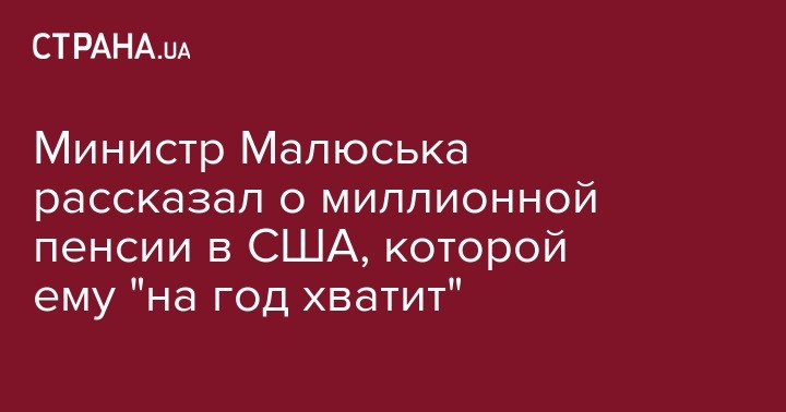 Министр Малюська рассказал о миллионной пенсии в США, которой ему "на год хватит"