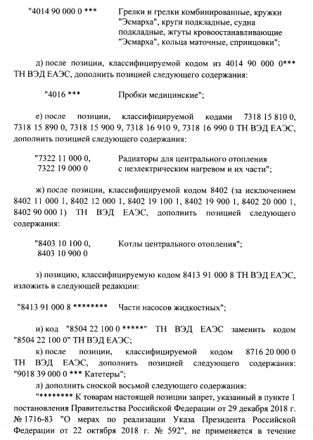 Список запрещенного к ввозу в РФ с Украины, пополнили, в частности, крахмал, глюкоза и фруктоза, медицинские пробки и трубки, грелки, спринцовки, радиаторы, части насосов и котлы центрального отопления.