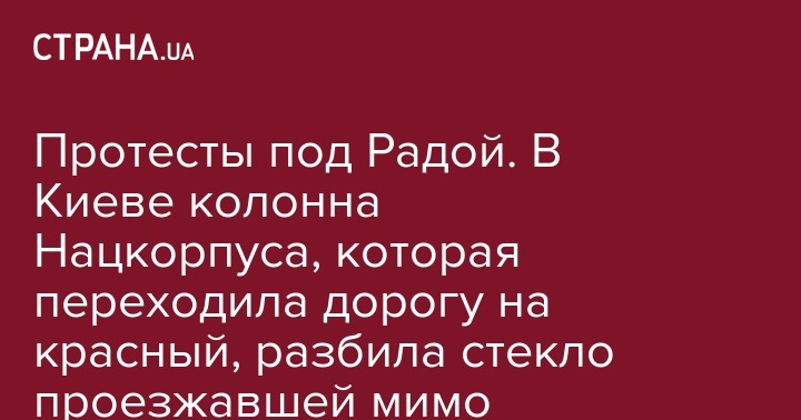 Он рассказал о том, что автомобиль ехал на зеленый, но колонна националистов из "Национального корпуса" начала переходить дорогу на красный, в результате чего у автомобиля разбили заднее стекло.