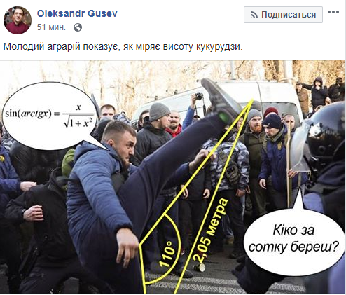 После столкновений с полицией под Верховной Радой 17 декабря, яркие фото, облетевшие сеть, успели стать мемами. Пользователи репостят их, придумывая новые подписи о жизни "молодых аграриев", которые пришли на митинг против продажи земли.