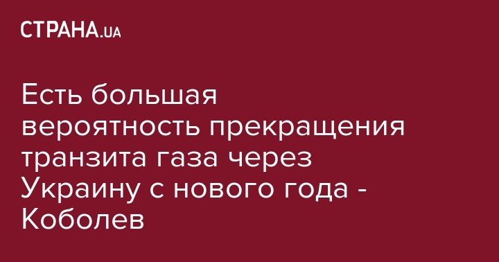 Есть большая вероятность прекращения транзита газа через Украину с нового года - Коболев