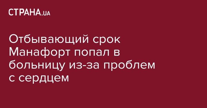Юрист и руководитель избирательной кампании Дональда Трампа в 2016 году Пол Манафорт, отбывающий семилетнее наказание в штате Пенсильвания, попал в больницу из-за болезни сердца.