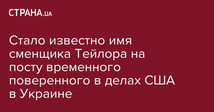 Стало известно имя сменщика Тейлора на посту временного поверенного в делах США в Украине