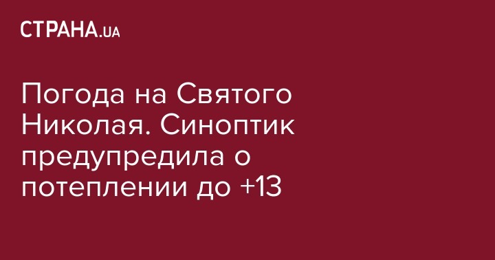 Погода в Украине на День Святого Николая будет теплой и солнечной, а воздух прогреется до небывалых +13 градусов. Об этом говорится в прогнозе синоптика Натальи Диденко.
