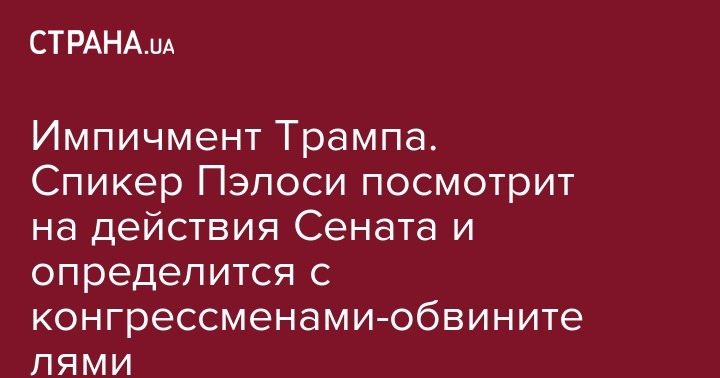 Импичмент Трампа. Спикер Пэлоси посмотрит на действия Сената и определится с конгрессменами-обвинителями