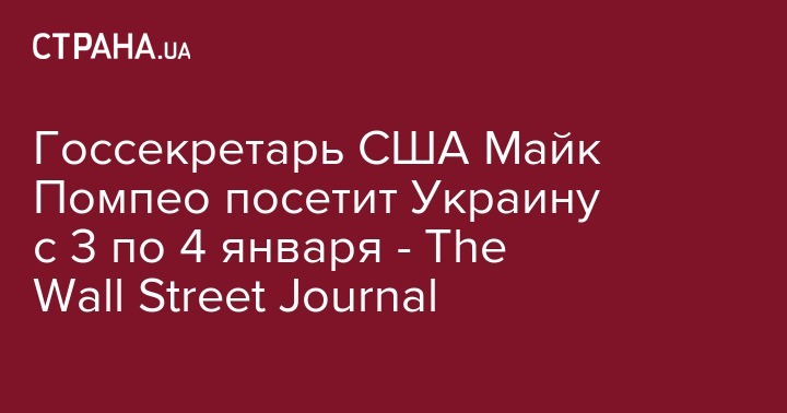 "Визит Помпео запланирован с 3 по 4 января в Киев, по словам украинских чиновников. Ожидается, что министр встретится с президентом Украины, добавил один из украинских чиновников, отметив, что встречу активно поддерживает Белый дом", - пишет издание.