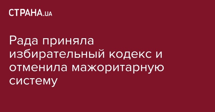 Новый Избирательный кодекс был принят 11 июля 2019 года Верховной Радой VIII созыва. Он предусматривает отмену мажоритарной системы, введение пропорциональной избирательной системы с открытыми партийными списками на выборах народных депутатов, а также изменение избирательной системы на местных выборах.