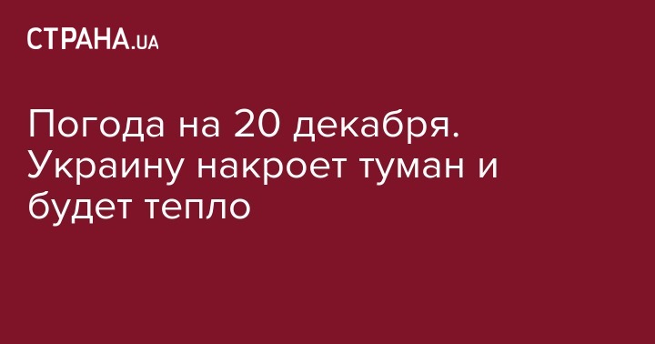 "20 декабря в Украине, кроме востока, ночью и утром туман, видимость 200-500 м (уровень опасности, желтый)", - говорится в сообщении.