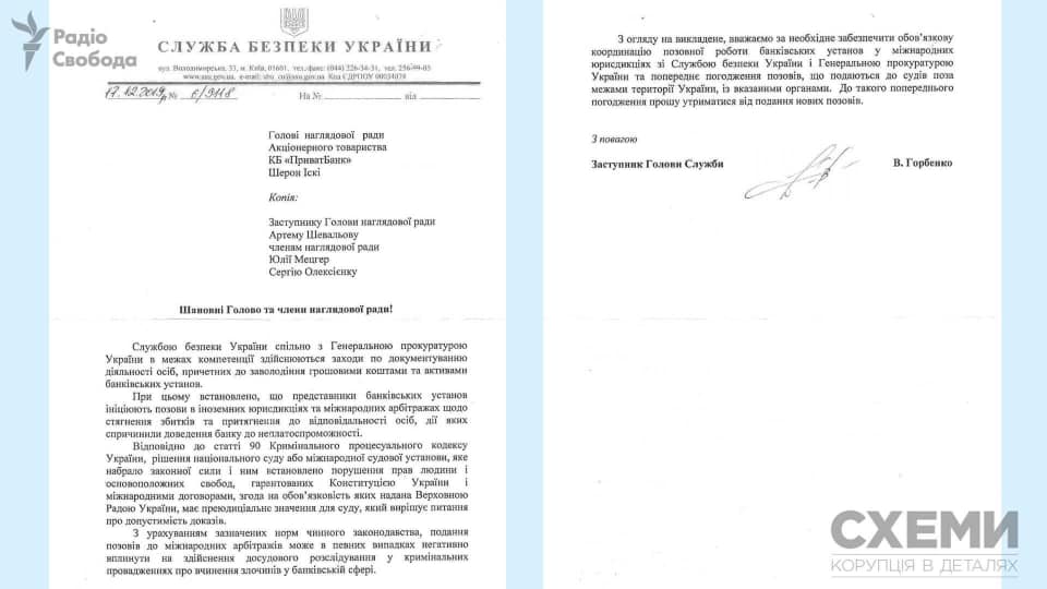 Служба безопасности Украины направила письмо руководству ПриватБанка, в котором выразила недовольство тем, что учреждение подало иск на Игоря Коломойского в израильский суд без согласования с нею и Генпрокуратурой.