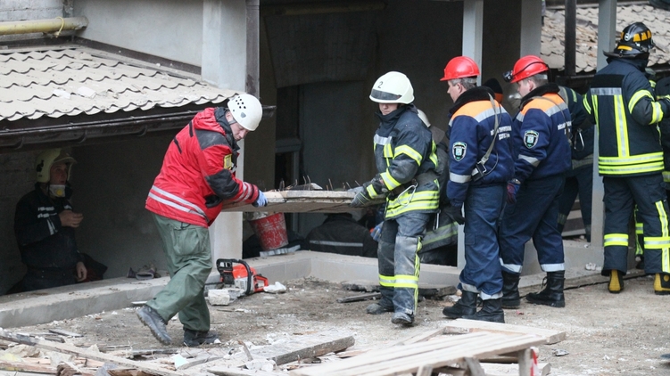 Пошуково-рятувальні роботи на місці обвалу перекриттів у відселеному будинку в Шевченківському районі міста Києва